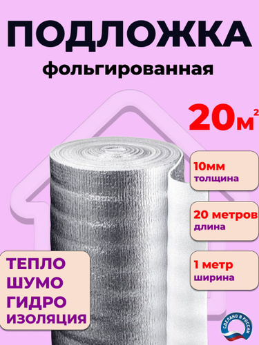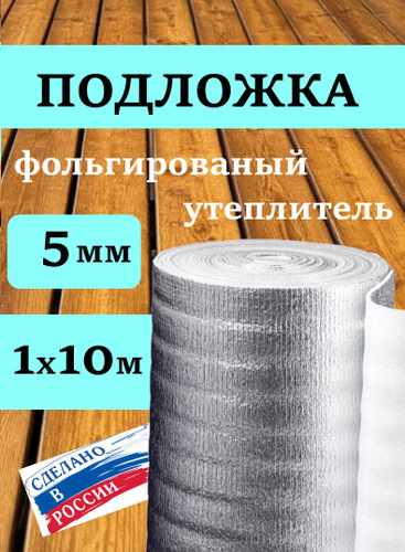Подложка 10м.2 10мм утеплитель фольгированный, лавсан теплоизоляция