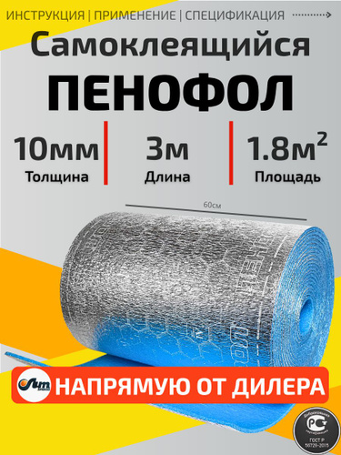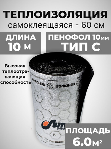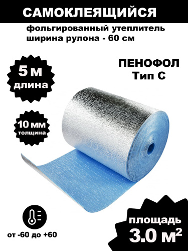 Утеплитель фольгированный самоклеящийся ПЕНОФОЛ С 10мм 3 метра