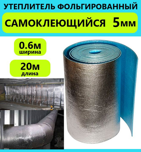 Подложка 0.6х20м 5мм самоклеющийся фольгированный утеплитель, универсальный