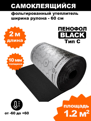 Самоклеящийся фольгированный утеплитель ПЕНОФОЛ С черный 10мм,10метров