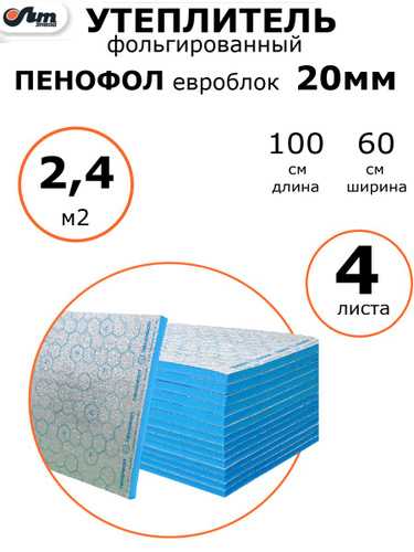 2.4 м2 ПЕНОФОЛ евроблок тип А 20мм утеплитель фольгированный