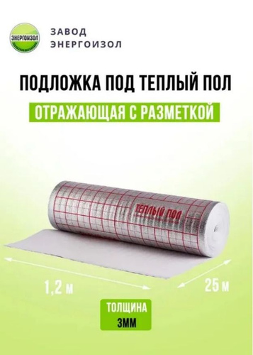 Подложка 1х25м 3мм фольгированный вспененый полиэтилен, утеплитель под ламинат и паркет, теплоизоляция