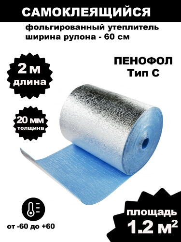 Фольгированный утеплитель для стен ПЕНОФОЛ самоклеющийся, 2000 С20 20мм 3м2