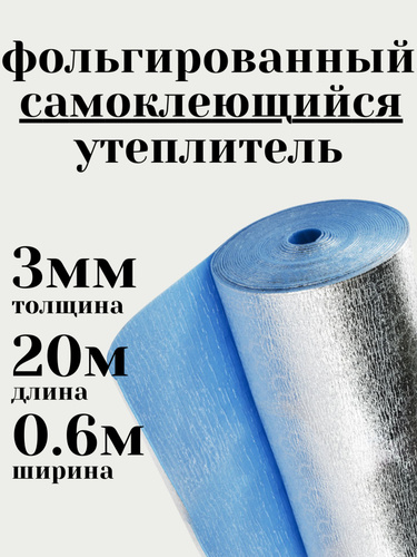 Подложка 0.6х20м 3мм самоклеющийся фольгированный утеплитель, универсальный