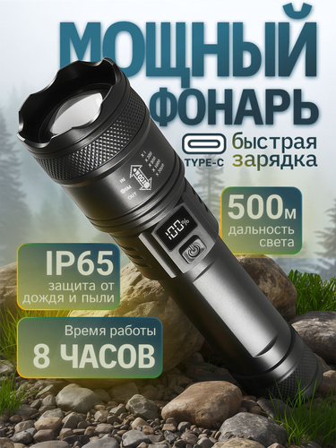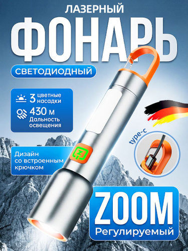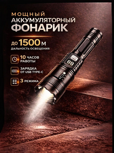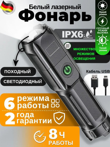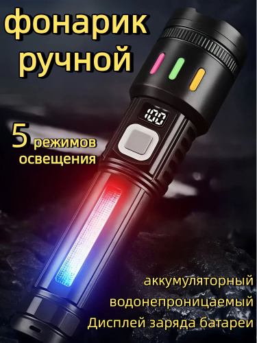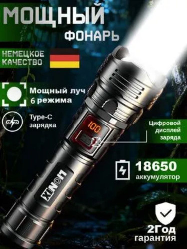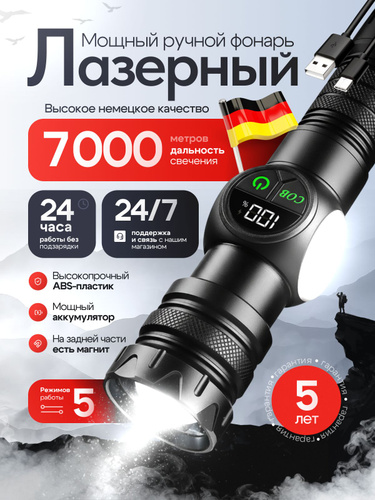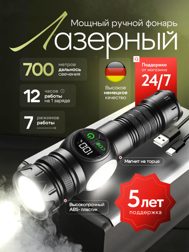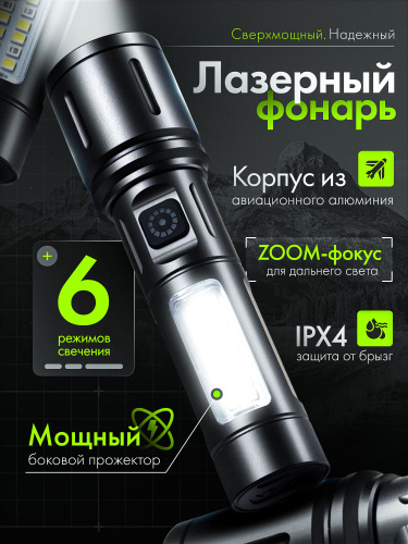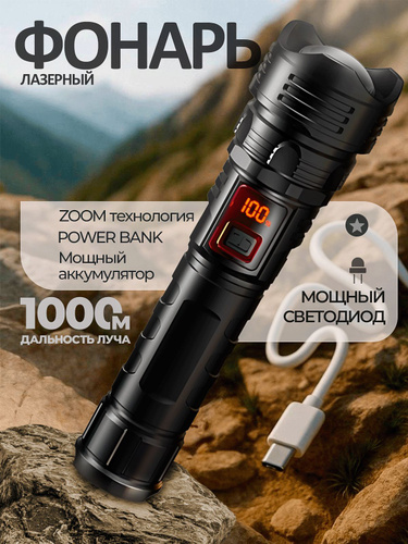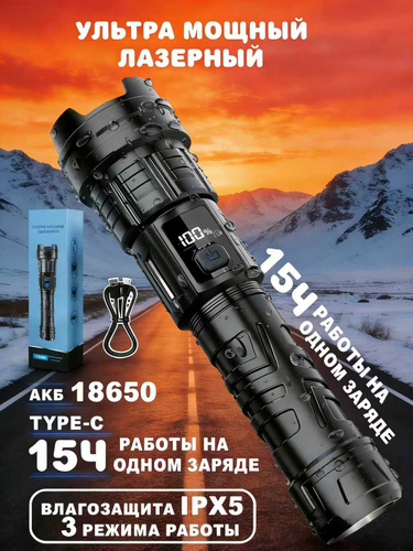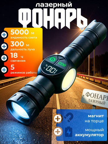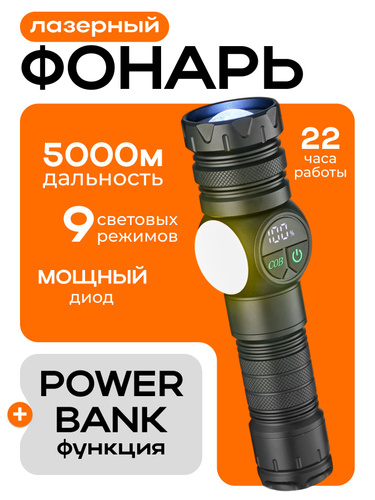 Фонарь ручной аккумуляторный лазерный светодиодный с дисплеем