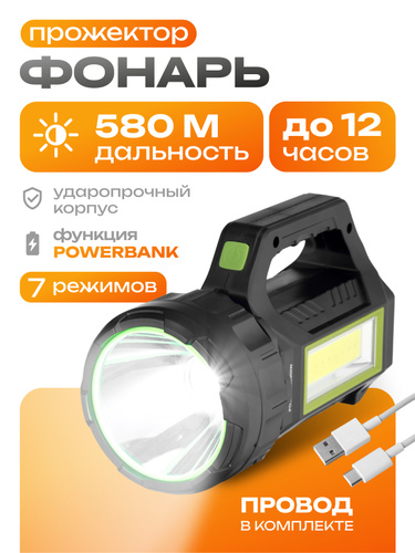 Фонарь аккумуляторный ручной 50м