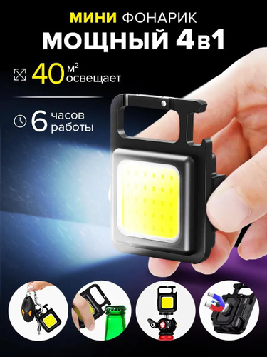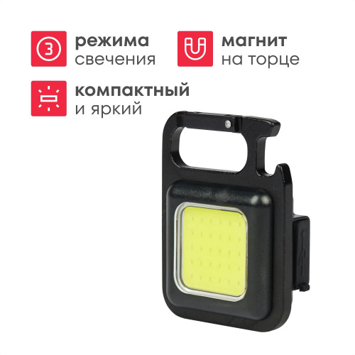 Фонарик брелок аккумуляторный с магнитом и карабином, 4 режима
