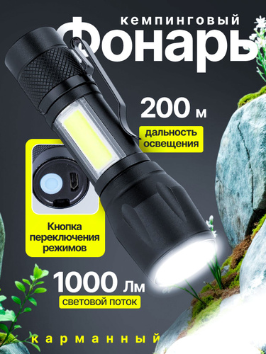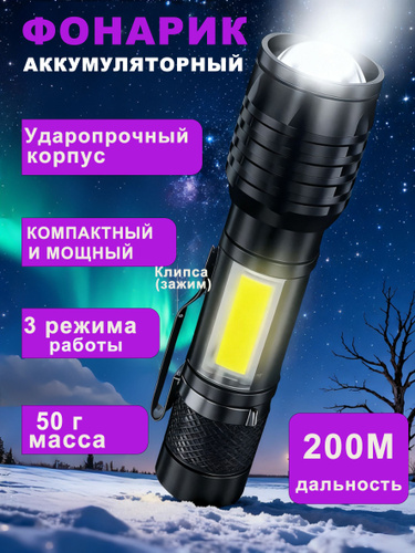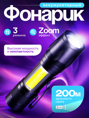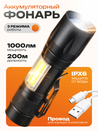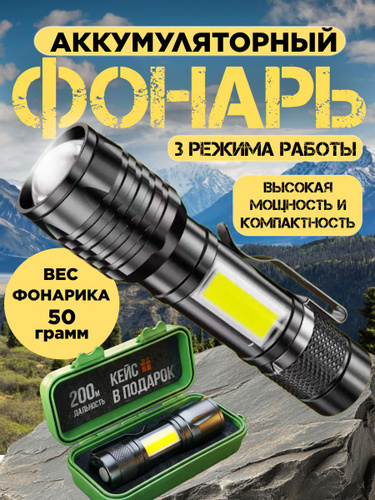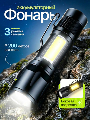 Фонарик аккумуляторный ручной мощный светодиодный