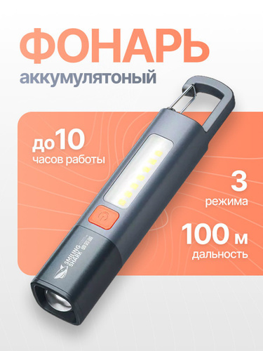 Фонарик аккумуляторный ручной, smiling shark фонарь