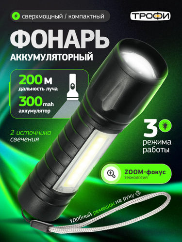 Фонарь аккумуляторный Трофи UA-101 светодиодный 3Вт LED + 3Вт COB оптический Zoom 3 режима