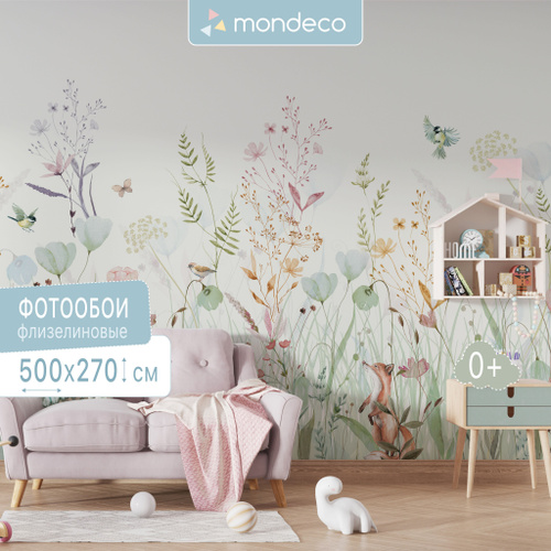 Фотообои на стену Цветы, Лисы, Трава 500*270 см флизелиновые фото обои Mondeco