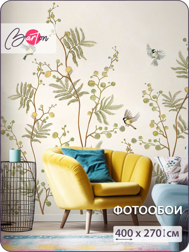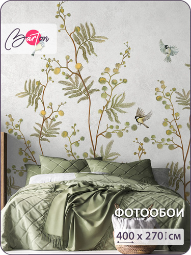 BARTONWALL Фотообои флизелиновые 3D 400х270 см Растения Птицы N173-G фото обои 3д на стену в спальню, детскую, гостиную
