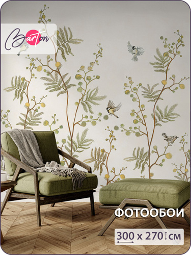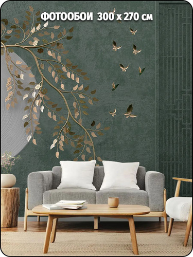 SEBRICCI Фотообои 3D на стену флизелиновые "Ветка" 300х270 см, обои виниловые, моющиеся
