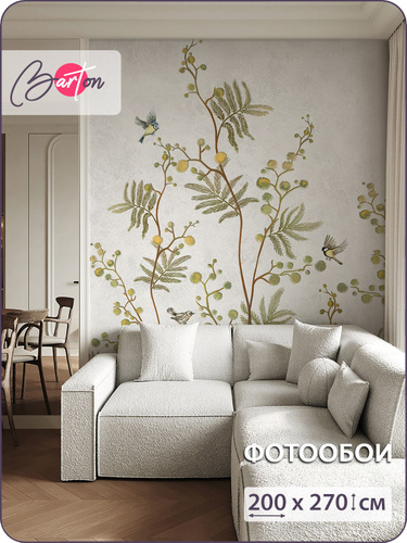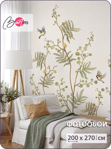 BARTONWALL Фотообои флизелиновые 3D 200х270 см Растения Птицы N173-G фото обои 3д на стену в спальню, детскую, гостиную