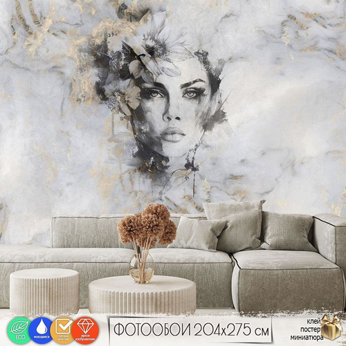 Флизелиновые фотообои 3Д на стену DreamWall "Девушка мрамор Арт. 70251" 204х275 см, моющиеся виниловые обои на кухню, в детскую, с эффектом 3d для спальни, декор для интерьерного покрытия в доме