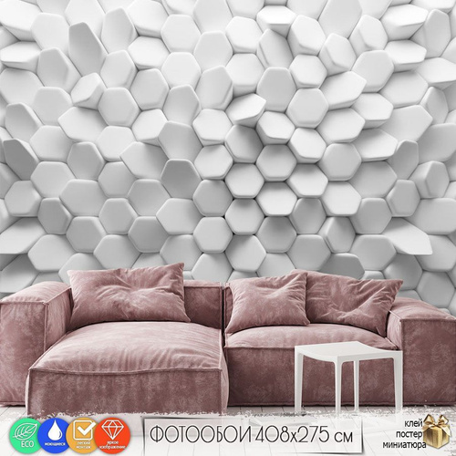 Флизелиновые фотообои 3Д на стену DreamWall "Соты Арт. 69938" 408х275 см, моющиеся виниловые обои на кухню, в детскую, с эффектом 3d для спальни, декор для интерьерного покрытия в доме