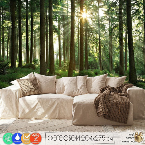 Флизелиновые фотообои 3Д на стену DreamWall "Лес на рассвете Арт. 70160" 204х275 см, моющиеся виниловые обои на кухню, в детскую, с эффектом 3d для спальни, декор для интерьерного покрытия в доме