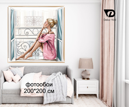 Флизелиновые фотообои на стену Dekor Vinil "Девушка на подоконнике" 200х200 см квадратные для спальни, гостиной, для девушки, для девочки