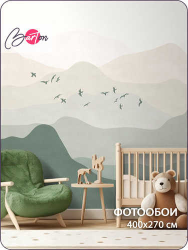 BARTONWALL Фотообои флизелиновые 3D 400x270 см Природа Горы Акварель N179-B 3д фото обои на стену в спалью, гостиную, кухню
