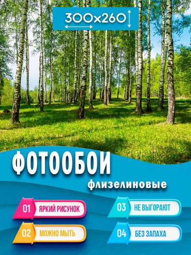 Фотообои Берёзы 3d флизелиновые в спальню моющиеся 200х150