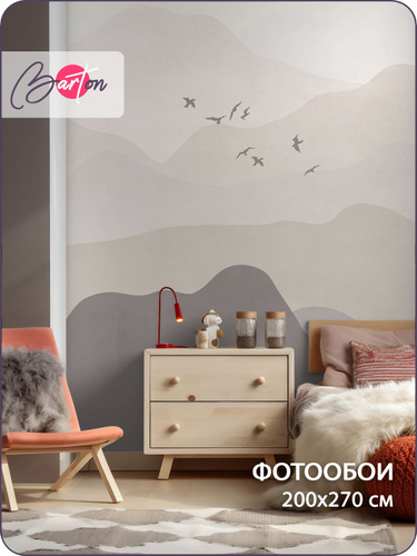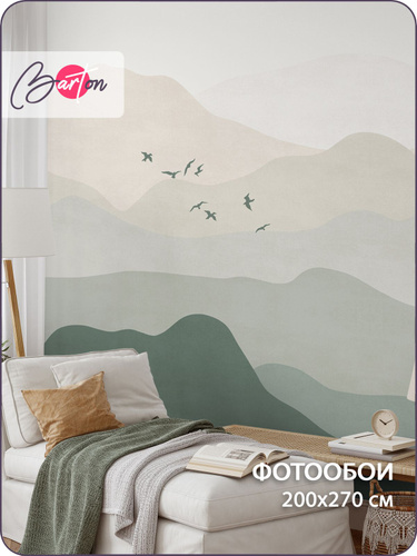 BARTONWALL Фотообои флизелиновые 3D 200x270 см Природа Горы Акварель N179-B 3д фото обои на стену в спалью, гостиную, кухню