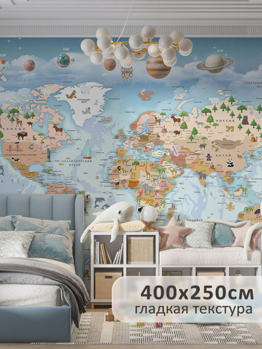 Фотообои на стену детские флизелиновые без ПВХ "Карта Мира" 400х250 см / фото обои в детскую