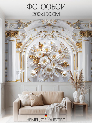 Фотообои 3D флизелиновые цветы и колонны 200х150