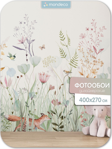 Фотообои на стену Цветы, Трава, Лисы флизелиновые 400х270 см фото обои Mondeco