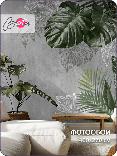 Фотообои 3d на стену флизелиновые BARTONWALL Лофт Тропические листья пальмы Монстера 400х270 см M039 фото обои на стену 3д. Товар уцененный