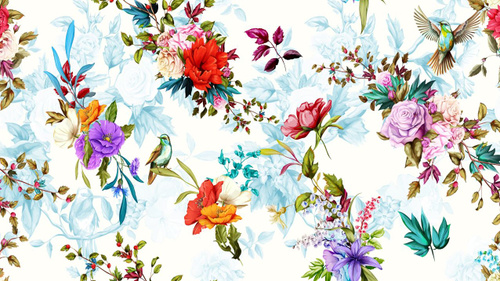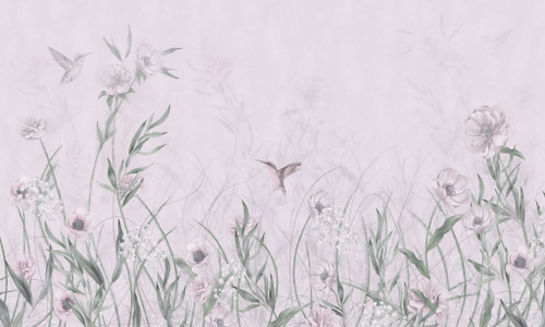 Фотообои на стену флизелиновые "Цветы и птички" 450х253 см. Товар уцененный