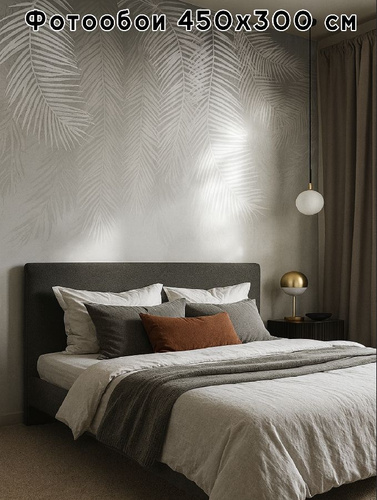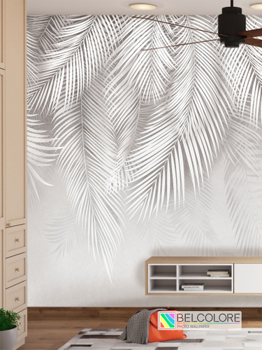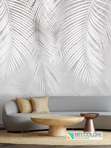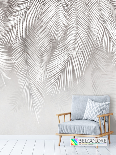 Фотообои на стену флизелиновые "Пальмовые листья серые" 450X300 см. Товар уцененный