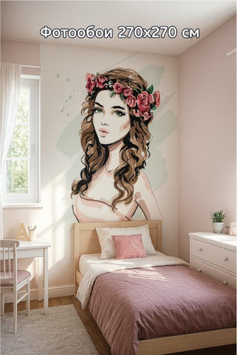 Фотообои на стену флизелиновые "Девушка в венке из роз" 270X270 см. Товар уцененный