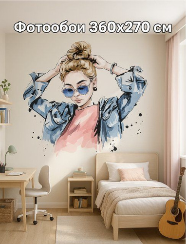 Фотообои на стену флизелиновые "Стильная девушка" 360X270 см/ фото обои в спальню, в детскую, в офис Уцененный товар
