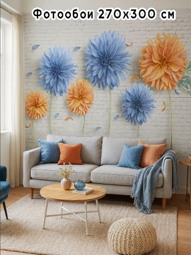Фотообои на стену флизелиновые "3D цветы на кирпичах " 270X300 см. Товар уцененный