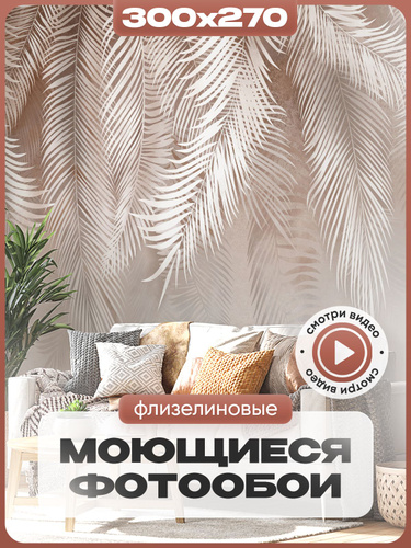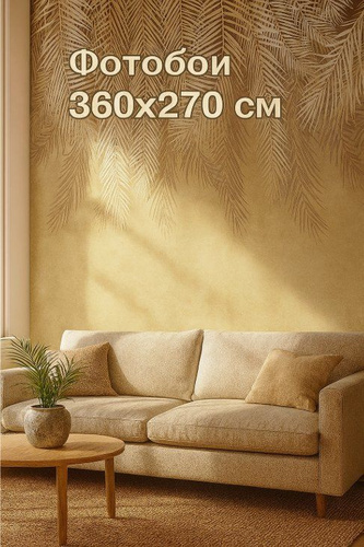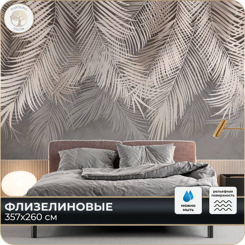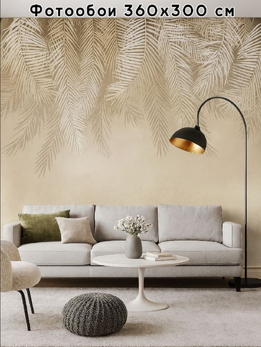 Фотообои на стену флизелиновые лакированные без винила "Пальмовые листья бежевые №2" 360X300 см. Товар уцененный
