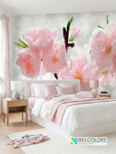 Фотообои 3d на стену флизелиновые 400х270 см цветы Сакура, на кухню, в спальню, рельефные, моющиеся. Товар уцененный