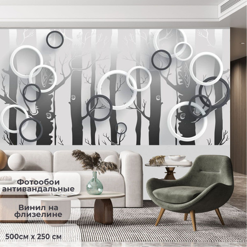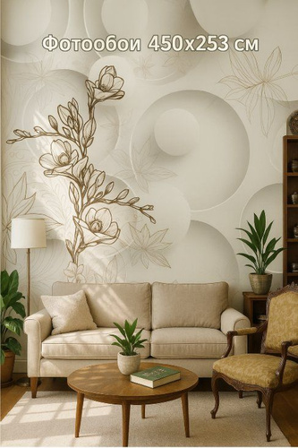 Фотообои на стену флизелиновые "3D цветочки и круги" 450х253 см. Товар уцененный