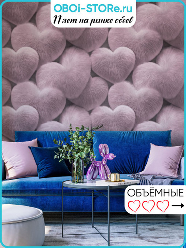 Обои в спальню, Флизелиновые 1.06 KOF-H Объемные сердца, Эффект фотообоев, Моющиеся, 3D эффект, F335252 Уцененный товар