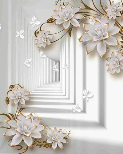 Auroom Фотообои в спальню и зал флизелиновые 400х270 "Цветы" 3d. Товар уцененный