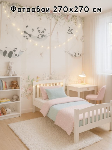 Фотообои на стену детские флизелиновые "Панды" 270х270 см. Товар уцененный
