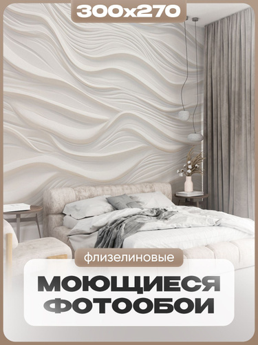 AUROOM Фотообои 3d в спальню и кухню флизелиновые 300х270 "Волны 3д на штукатурке". Товар уцененный