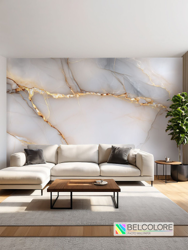 Фотообои 3d на стену флизелиновые 400х270 см, Мрамор бьянко на кухню, в спальню, рельефные, моющиеся. Товар уцененный
