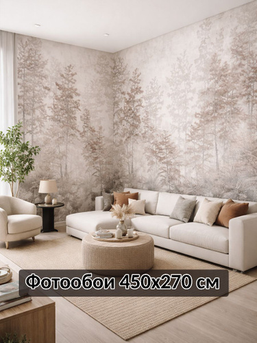 Фотообои на стену флизелиновые Деревья в тумане 450X270 см/ 3д фото обои в спальню, на кухню. Товар уцененный