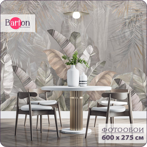 Бесшовные фотообои 3d на стену флизелиновые BARTONWALL Листья Тропики 600х275 см N107-G фото обои на стену 3д. Товар уцененный