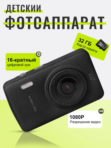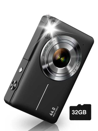 Фотоаппарат цифровой 44 МП, компактная детская камера, 16x зум, антидрожь, 32G micro SD- черный