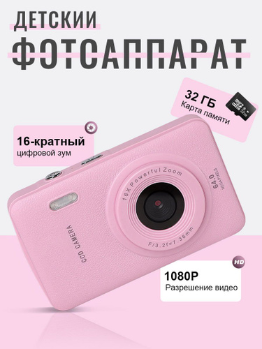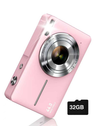 Фотоаппарат цифровой 44 МП, компактная детская камера, 16x зум, антидрожь,32G micro SD-розовый