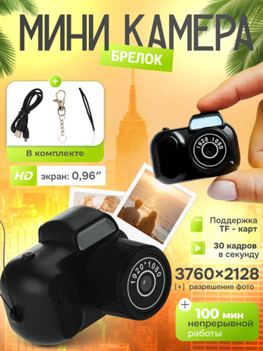 X.O STORE Цифровой фотоаппарат Мини видеокамера брелок, черный