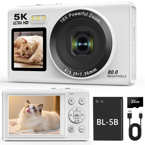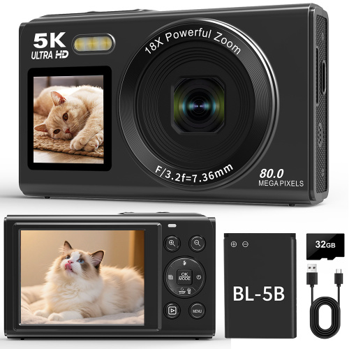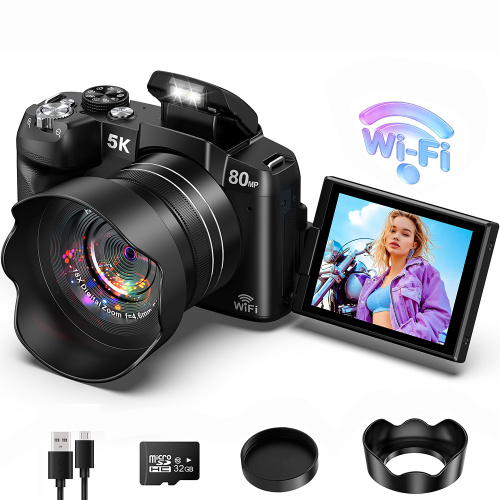 Цифровая Камера 5K 80 МП с Wi-Fi с двумя экранами, в комплекте с аккумулятором и SD-картой 32GB