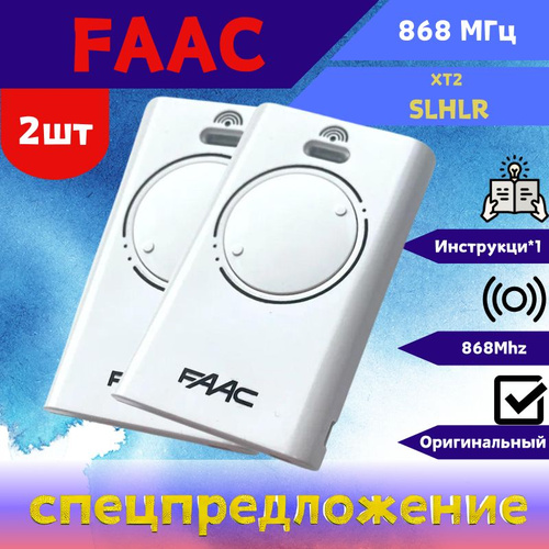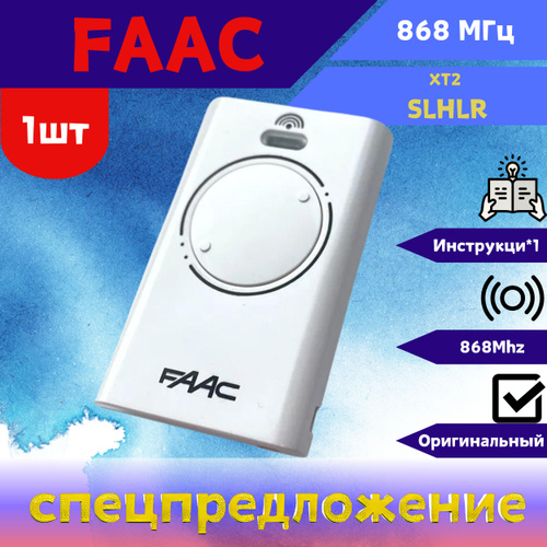Пульт для ворот и шлагбаумов FAAC XT2 868 SLH WHITE 2-х канальный брелок-передатчик, 868 МГц, Белый (1шт)