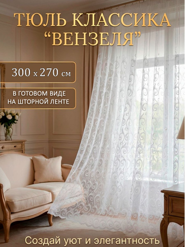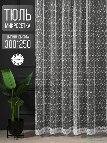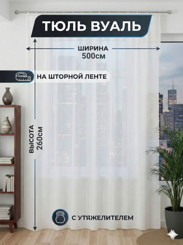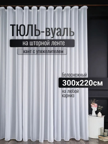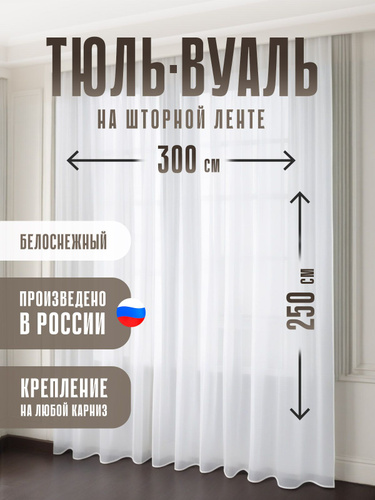 Тюль 300x240 см для спальни, кухни и гостиной комнаты белая вуаль Decor-Rocket